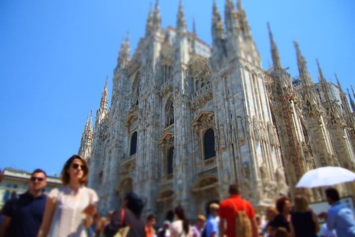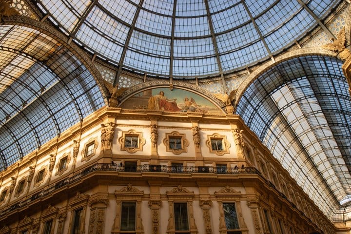 Milan, seen from above. We begin on the Highline rooftop above Galleria Vittorio Emanuele II, one of the rarest vantage points in the city: a glass-and-iron arcade built in 1877, viewed not from within its elegant boutiques but from above its vaulted roof, looking out across the city toward the white marble silhouette of the Duomo. From there, a guide leads you through the doors of the Duomo di Milano — the third-largest cathedral in the world, nearly six centuries in the making — for an interior visit that moves through its nave of 52 pillars, its 40 stained-glass windows dating back to the 15th century, and the sculptural detail most visitors walk past without slowing down.
